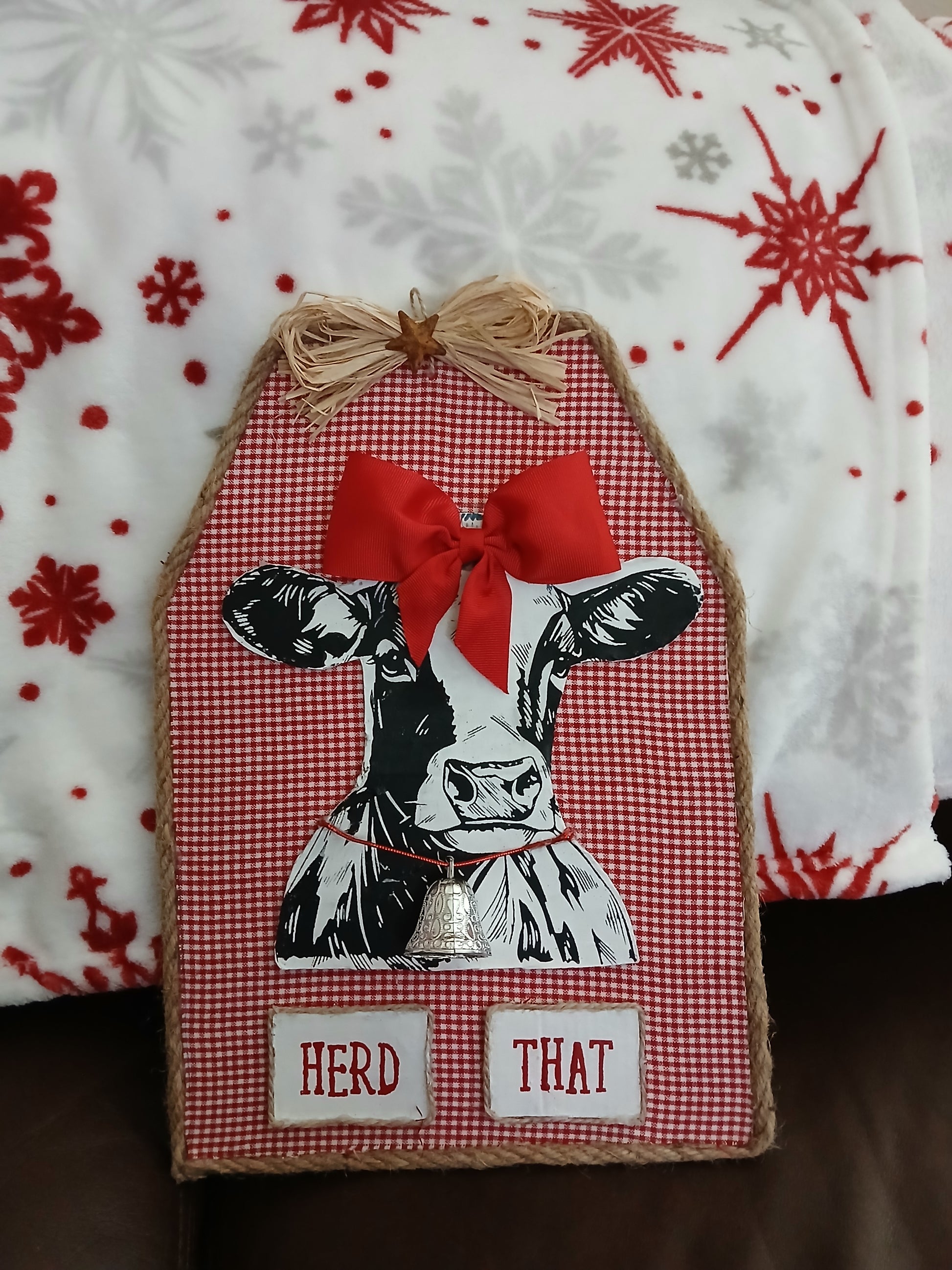Introducing Herd that, a unique piece of whimsical art featuring a cow. With its playful design, this piece will add a touch of charm and character to any space. Let this charming cow bring a smile to your face and brighten up your home decor. 13.5" tall x 9.5" Wide